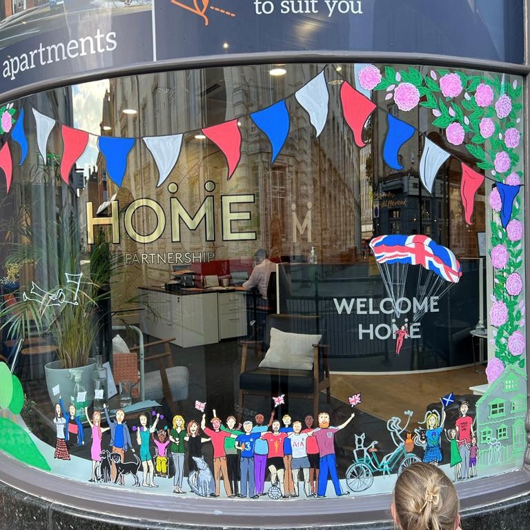 We celebrated the Queen’s Platinum Jubilee with some wonderful window art from a local artist called Juliet Townsend. She said …