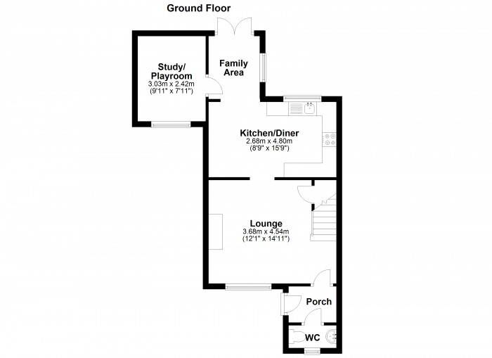 Situated at the end of this mews turning is this extended, three double bedroom, end terraced house which is offered for sale with no onward chain. The accommodation comprises an entrance porch with a ground floor cloakroom. There is a good sized lounge with a staircase leading to the first floor. There is then an archway giving access to a fitted kitchen/dining room. The kitchen is fitted with a range of base and eye level units and incorporates an integrated fridge/freezer and washing machine. There is also space and plumbing for a dishwasher. Leading off the kitchen/diner is a family area which has double glazed French doors leading out onto the rear garden and a door which gives access to a study/playroom. Upstairs there are three double bedrooms as well as a family bathroom . To the rear of the property the garden commences with a paved patio area and is then laid principally to lawn extending out to the side and rear of the house. There is a timber summerhouse which measures 15'8 x 9‘3 which would make an ideal home office. This room has light and power connected and double glazed doors and windows to the side. This property has gas-fired radiator central heating and is double glazed.